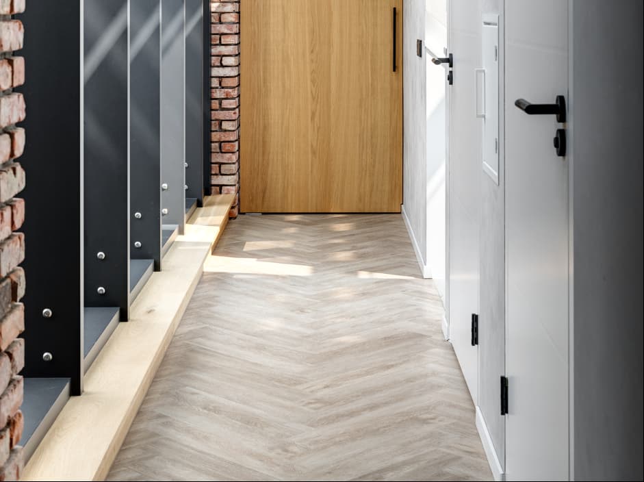 Pflege und Reinigung eines Design-Bodens ist sehr einfach. Es ist ein gebrauchsfertiges Produkt, das nur wenig Wartung benötigt. Einfach absaugen und gelegentlich mit lauwarmem Wasser mit einem Schuss PVC-Reiniger wischen .