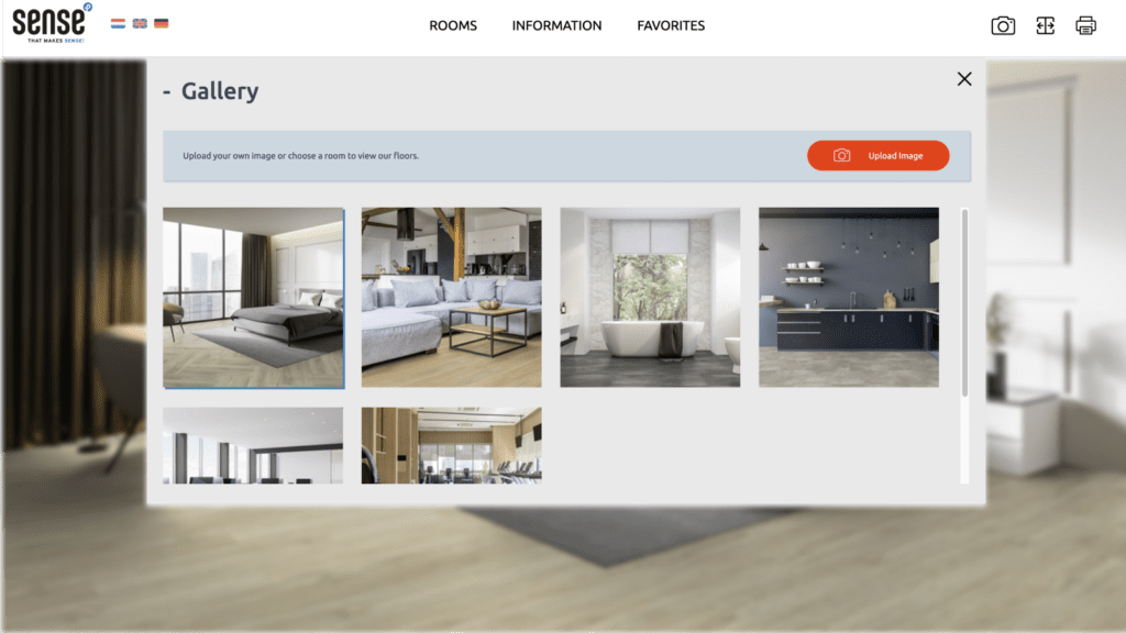 Neugierig, wie ein Sense-PVC-Boden in Ihrem Interieur aussieht? Mit unserem praktischen Visualisierungstool können Sie es sofort sehen! Laden Sie einfach ein Foto Ihres Raumes hoch, wählen Sie Ihren Lieblingsboden aus unserer Kollektion und betrachten Sie das Ergebnis, als wäre der Boden schon da. So können Sie sicher die richtige Wahl treffen und erkennen auf einen Blick, welcher Boden perfekt zu Ihrem Stil passt.